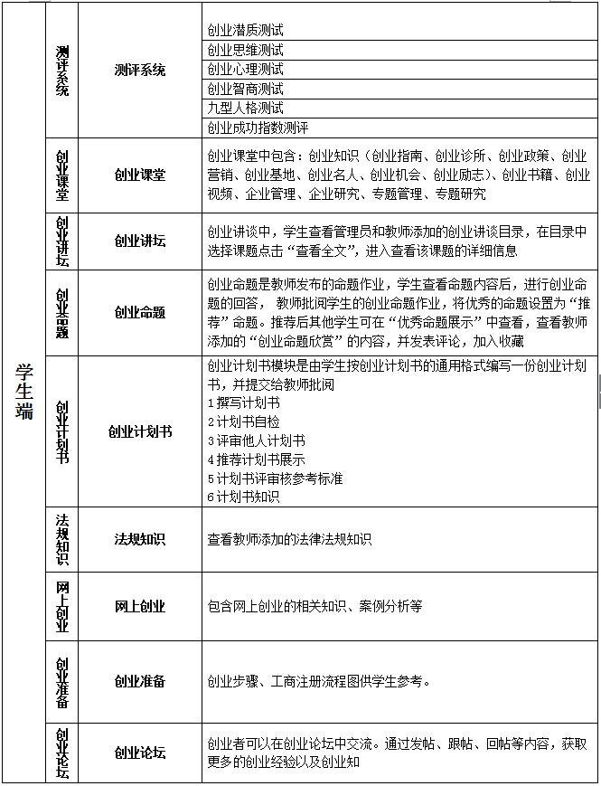關(guan)鍵詞:大學(xue)生(sheng)創(chuang)業(ye)(ye)模擬實訓(xun)實戰教(jiao)(jiao)學(xue)平臺 大學(xue)生(sheng)創(chuang)業(ye)(ye)實訓(xun)教(jiao)(jiao)學(xue)軟件(jian) 大學(xue)生(sheng)創(chuang)業(ye)(ye)實訓(xun)教(jiao)(jiao)學(xue)系統 大學(xue)生(sheng)創(chuang)業(ye)(ye)實訓(xun)室解決方案(an)